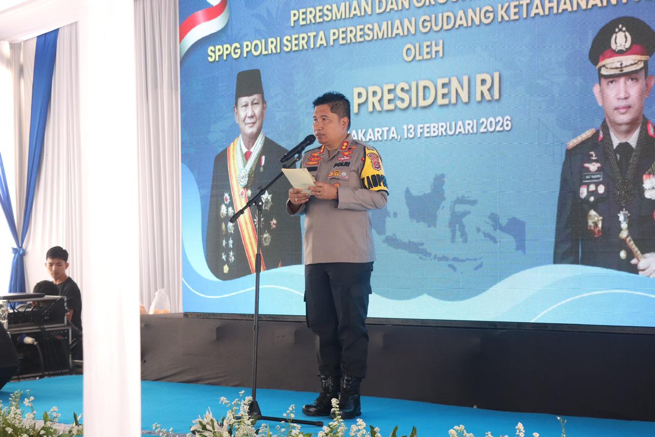 Cilegon – Polres Cilegon Polda Banten meresmikan Satuan Pelayanan Pemenuhan Gizi (SPPG) Tatag Trawang Tungga di wilayah Kecamatan Cibeber, Kegiatan tersebut menjadi bagian dari peresmian SPPG dan Ground Breaking Gudang Ketahanan Pangan Polri yang dilaksanakan serentak secara nasional melalui Zoom Meeting bersama Presiden Republik Indonesia. Jumat (13/2/2026).