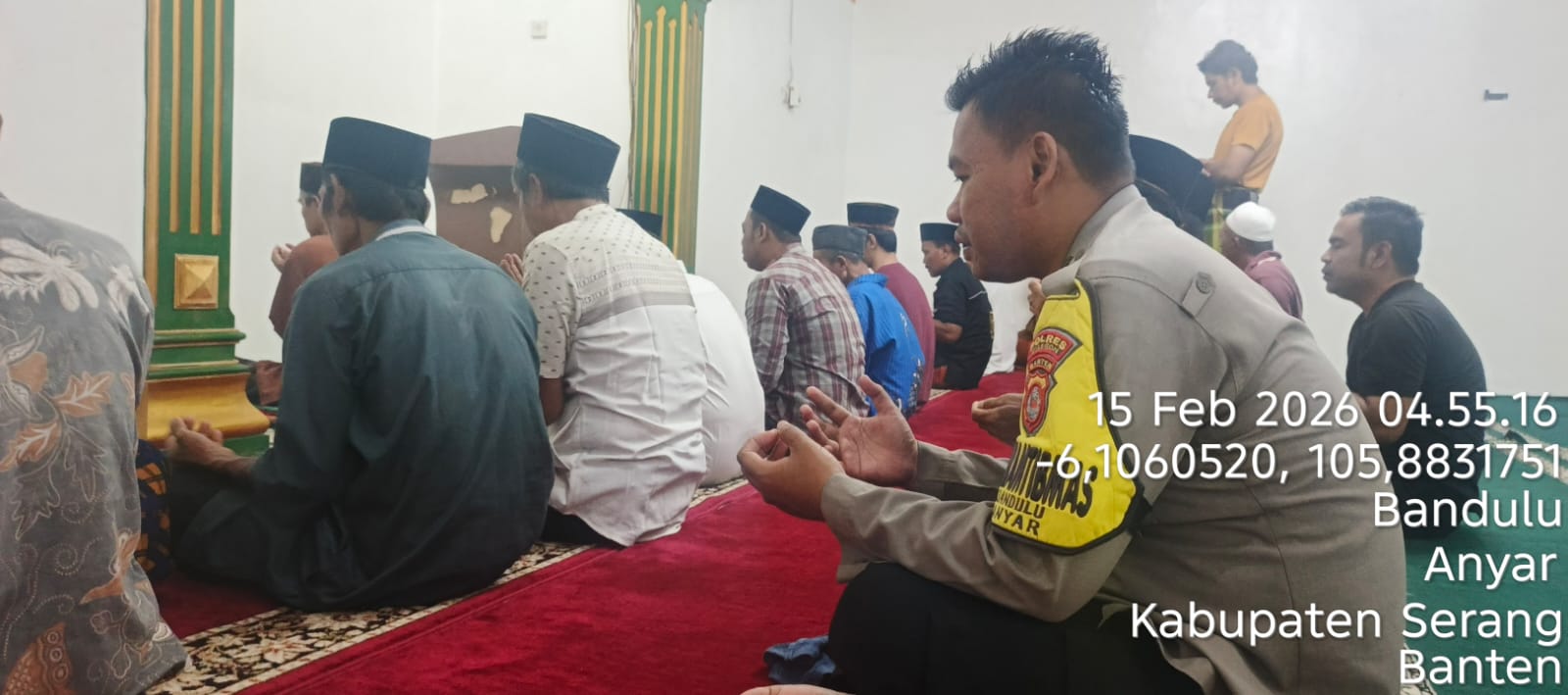 kegiatan tersebut, Personil Polsek Anyar berbaur dengan jemaah masjid dalam