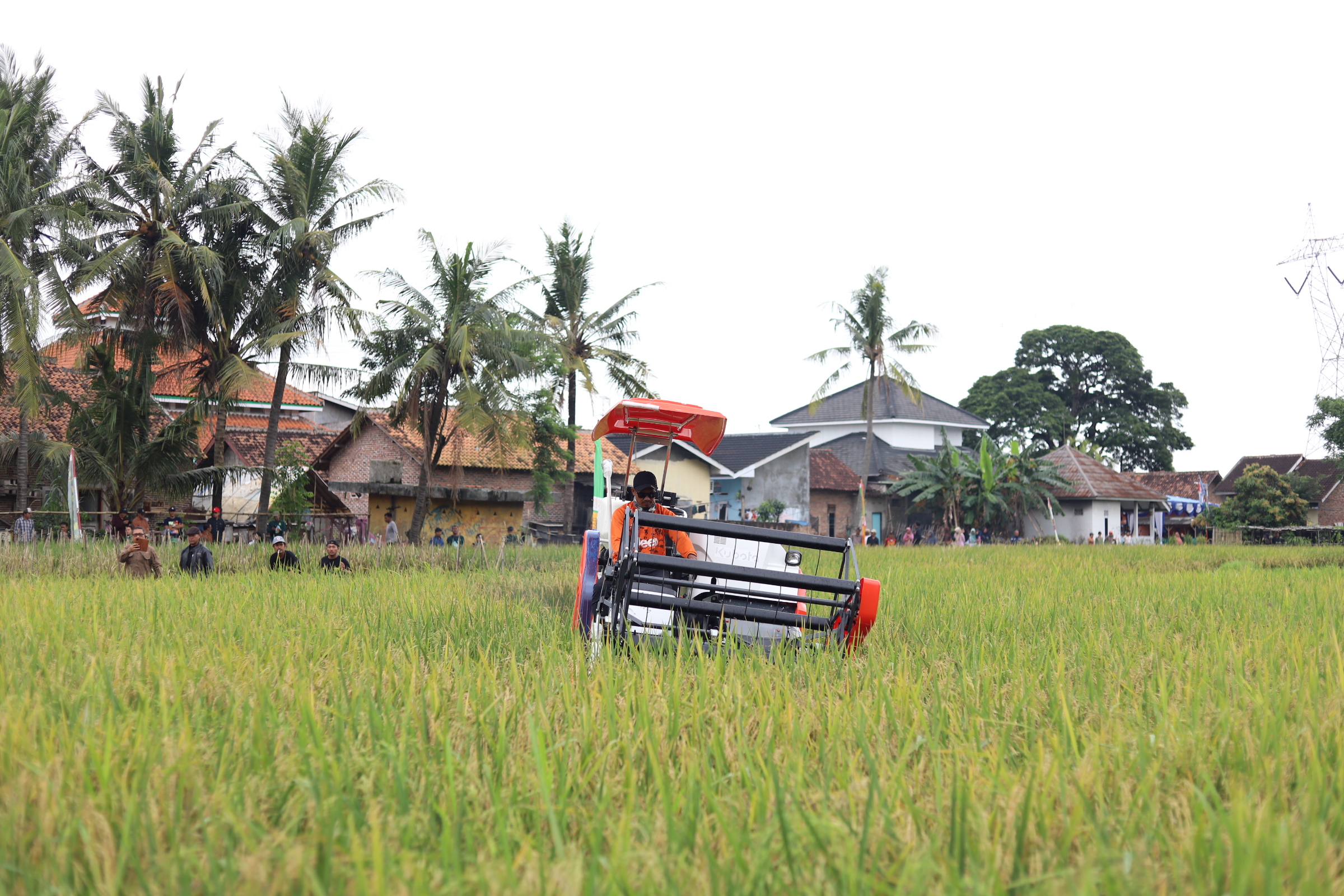 Kegiatan dilanjutkan dengan pembacaan doa dan prosesi panen raya padi secara simbolis. Suasana kegiatan berlangsung penuh keakraban, mencerminkan kebersamaan dan kepedulian seluruh unsur terhadap keberlanjutan sektor pangan.