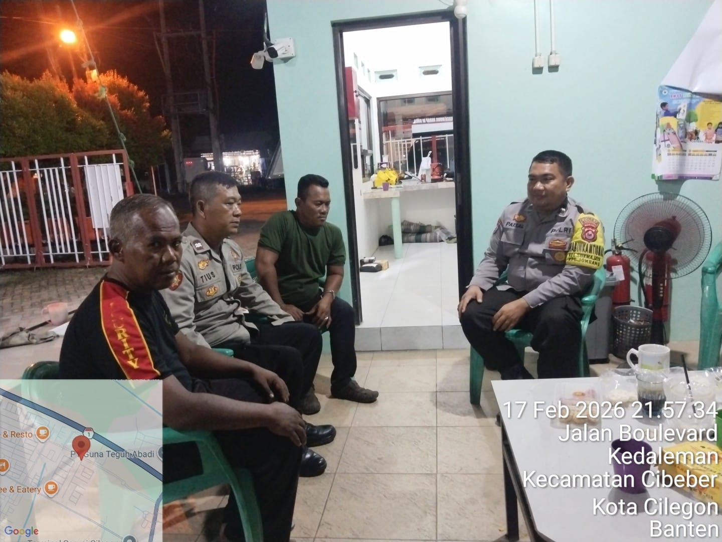 Cilegon – Polres Cilegon Polda Banten, Personil Polsek Cilegon Polres Cilegon Polda Banten laksanakan bincang dialogis sekaligus sampaikan himbauan kamtibmas kepada pihak keamanan/security tepatnya di Pos Security Perum Bonakarta dan Perum Taman Cilegon Indah Kota Cilegon. Rabu (18/02/2026).
