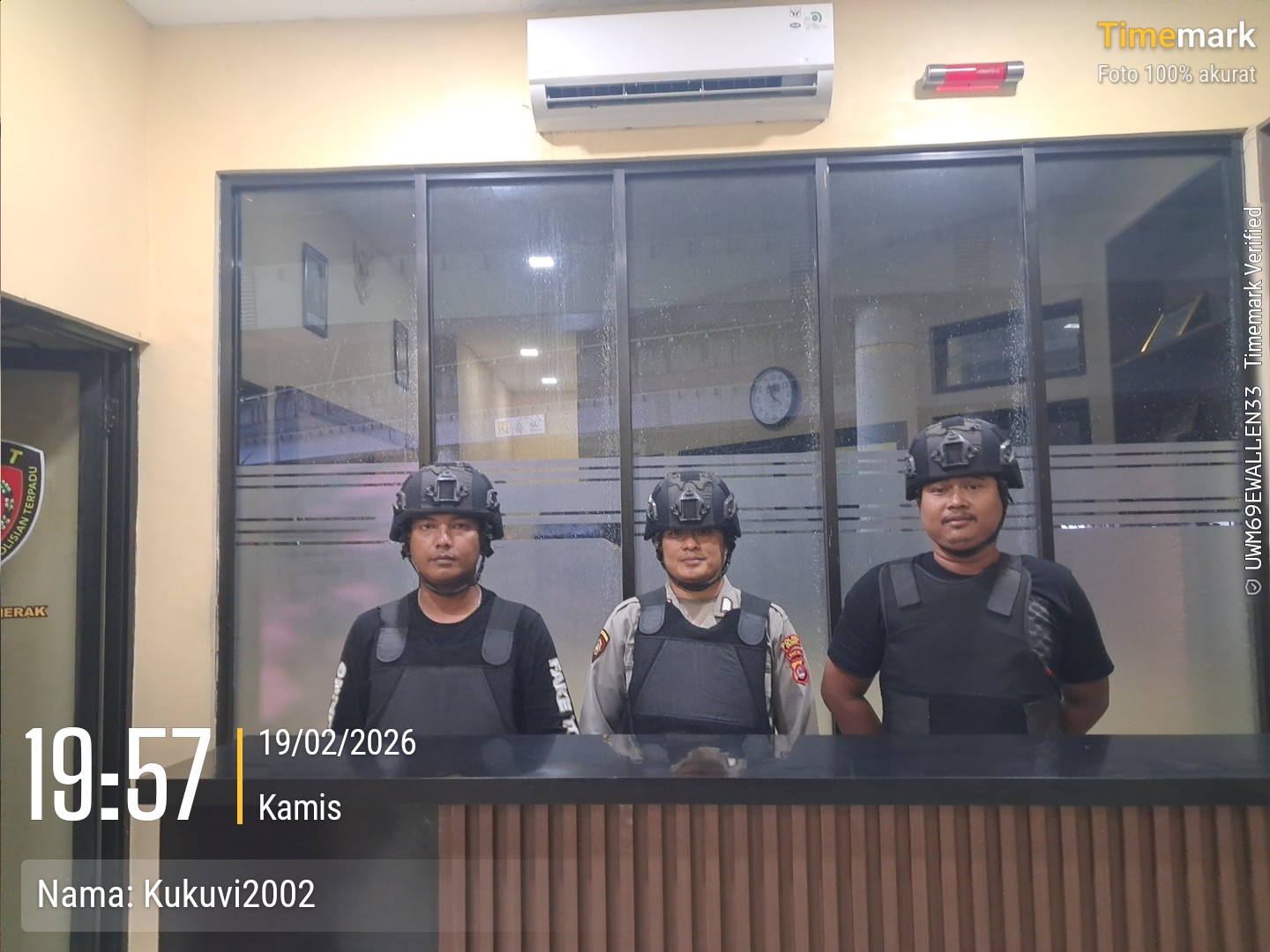 Cilegon - Personel piket jaga Polsek Kskp Merak Polres Cilgon Polda Banten melaksanakan siaga 1 Polsek pelaksanaan Sispam Mako oleh piket siaga dipimpin oleh Kspk Polsek Kskpy Merak Polres Cilegon Polda Banten, Kamis (19/02/2026).