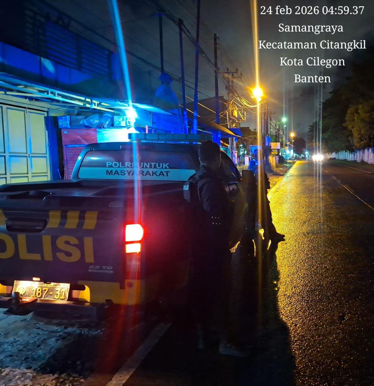 Cilegon - Kanit Dalmas Abu nawar beserta Anggota Team Patroli Maung Presisi Satsamapta Polres Cilegon melaksanakan patroli street crime untuk menjaga Harkamtibmas di daerah hukum Polres Cilegon Dalam rangka mencegah tindak pidana 3C (Curat, Curas dan Curanmor) agar situasi yang aman dan kondusif, anggota Perintis Presisi Team Jawara Satsamapta Polres Cilegon di jalan protokol kota Cilegon, Rabu (26/2/2026)