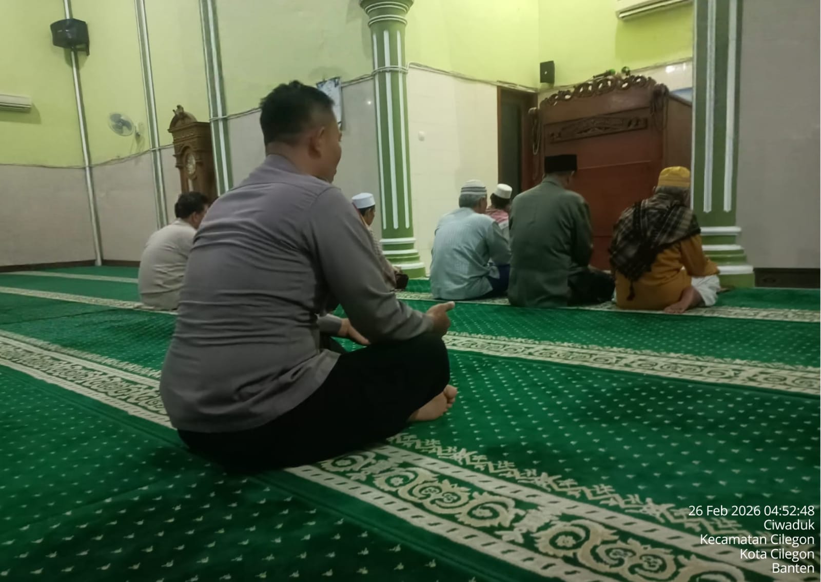 Cilegon – Polres Cilegon Polda Banten, Personil Polsek Cilegon Polres Cilegon menggelar kegiatan Pembinaan Rohani dengan shalat subuh keliling di Masjid Al - Muhajirin Jl. Kh. TB. Ismail Kavling Blok G Rt.007/006 Kel.Ciwaduk Kec. Cilegon Kota Cilegon, Kamis (26/02/2026).