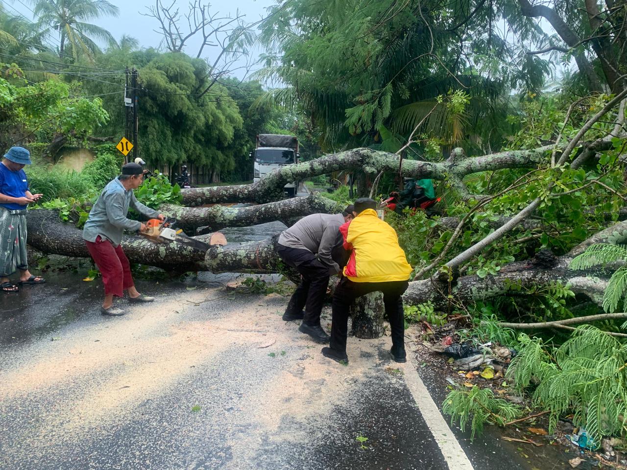 *Polres Cilegon* - di Jalan Raya Cinangka-Anyer tepatnya di Kp. Lebak Sawo Ds. Sindanglaya Kec. Cinangka Kab. Serang telah terjadi pohon tumbang yang disebabkan oleh Angin dan Pohon yang sudah berumur tua, Jumat (27/022026).