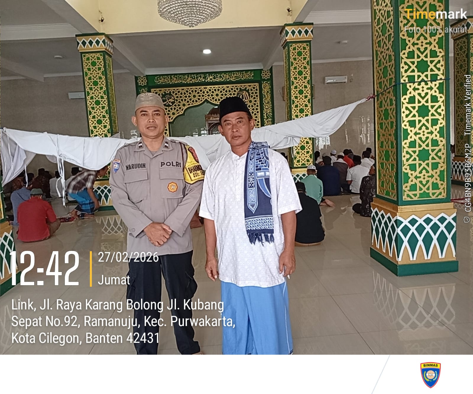 Cilegon - Bhabinkamtibmas Polsek Ciwandan Polres Cilegon Polda Banten Selesai melaksanakan Sholat secara berjama’ah dan Sampaikan Himbauan-himbauan Kamtibmas Kepada Masyarakat Jama'ah Yang ada Dimasjid, Jum'at (27/02/2026).