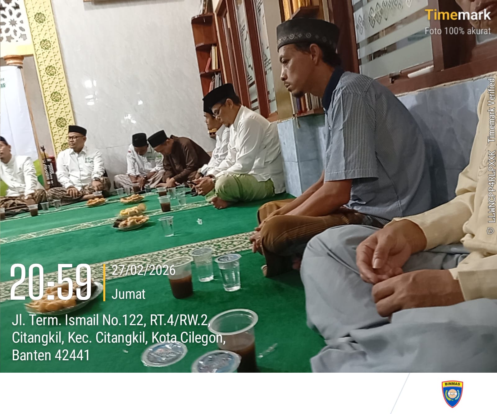 Cilegon - Polres Cilegon melalui Bhabinkamtibmas AIPDA WARUDIN melaksanakan kegiatan Tarwih Keliling (Tarling) di Mesjid Nurul Ikhlas, Link.Tegal cabe RT 01 RW 02 Kel.Citangkil, Jum'at (27/02/2026) malam. Kegiatan ini dihadiri oleh Lurah Citangkil, Babinsa SERKA JANDRI, Ketua DKM, PCNU dan rombongan, serta masyarakat setempat.