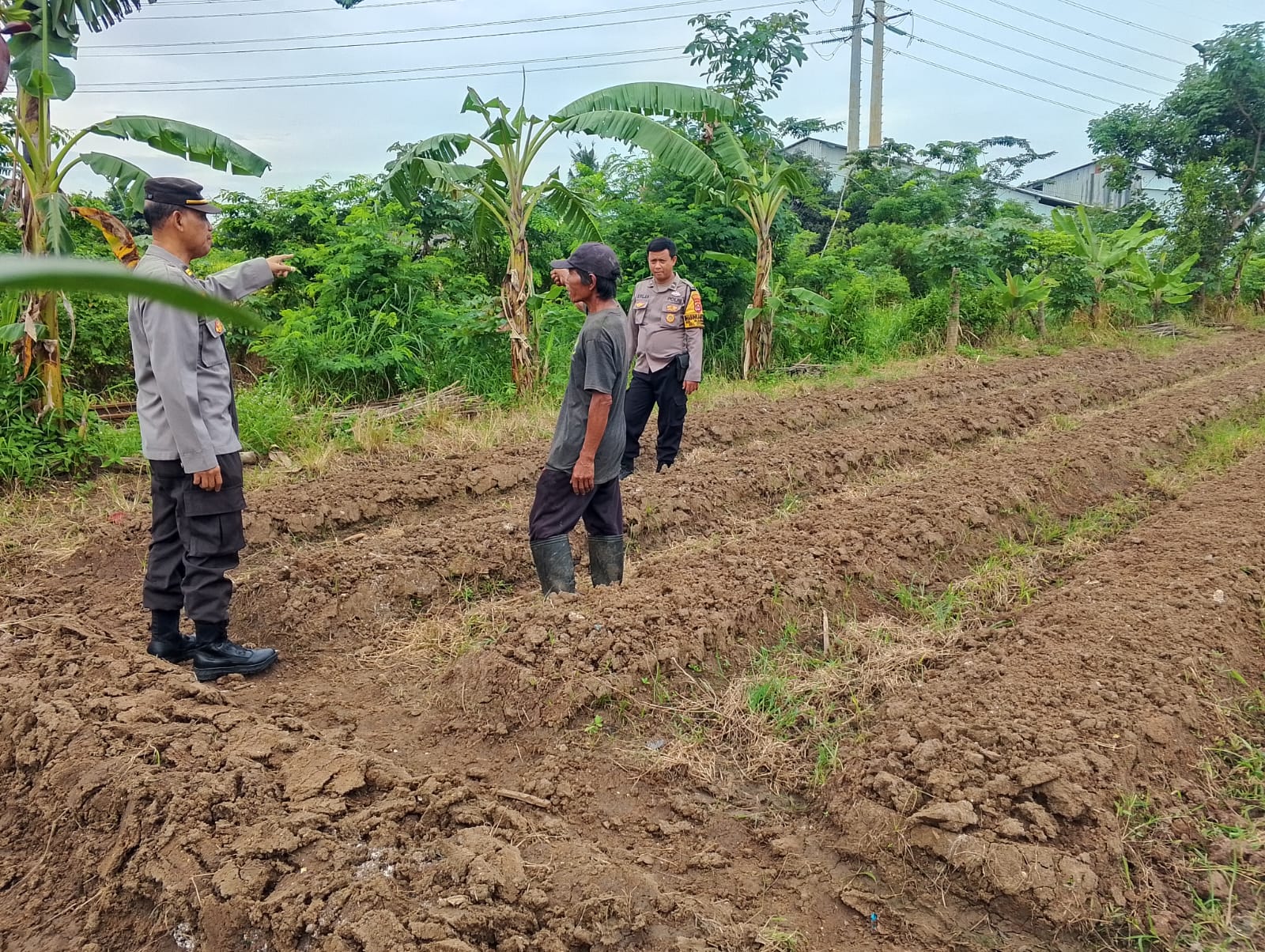 Cilegon - Dalam upaya mendukung program ketahanan pangan nasional Panit Binmas Polsek Ciwandan IPTU Mustriatno Bersama Bhabinkamtibmas Polsek Ciwandan Polres Cilegon Polda Banten AIPDA Mere Erlansyah melaksanakan kegiatan sambang dan kunjungan ke Lahan Produktif warga di lingkungan Kelurahan Warnasari kecamatan Citqngkil kota Cilegon, Senin (02/03/2026).