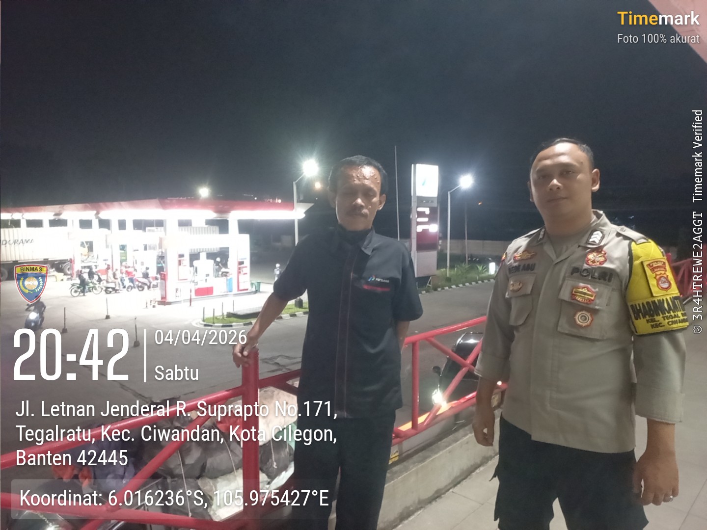 Cek Dan Monitoring BBM,Bhabinkamtibmas Polsek Ciwandan Datangi SPBU Daerah Binaan