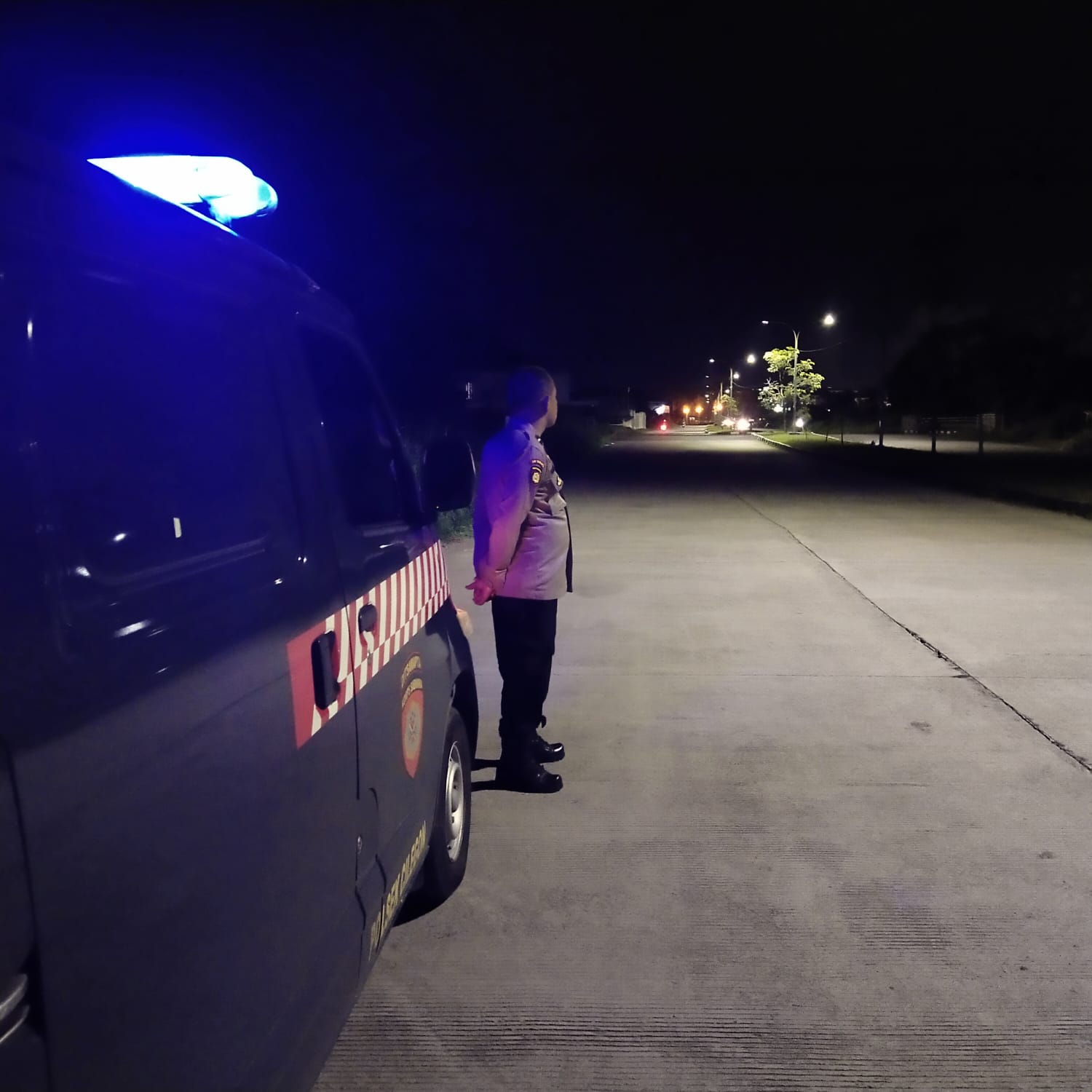 sarana mobil Patroli dinas dan menyalakan sorot lampu rotator khas Kepolisian
