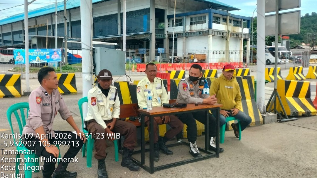 Cilegon - Personel Polsek Kskp Merak Polres Cilegon Polda Banten melaksanakan sambang dan patroli kawasan pelabuhan merak dalam rangka menjaga Harkamtibmas di Kawasan Pelabuhan Merak, Kamis (09/04/2026).
