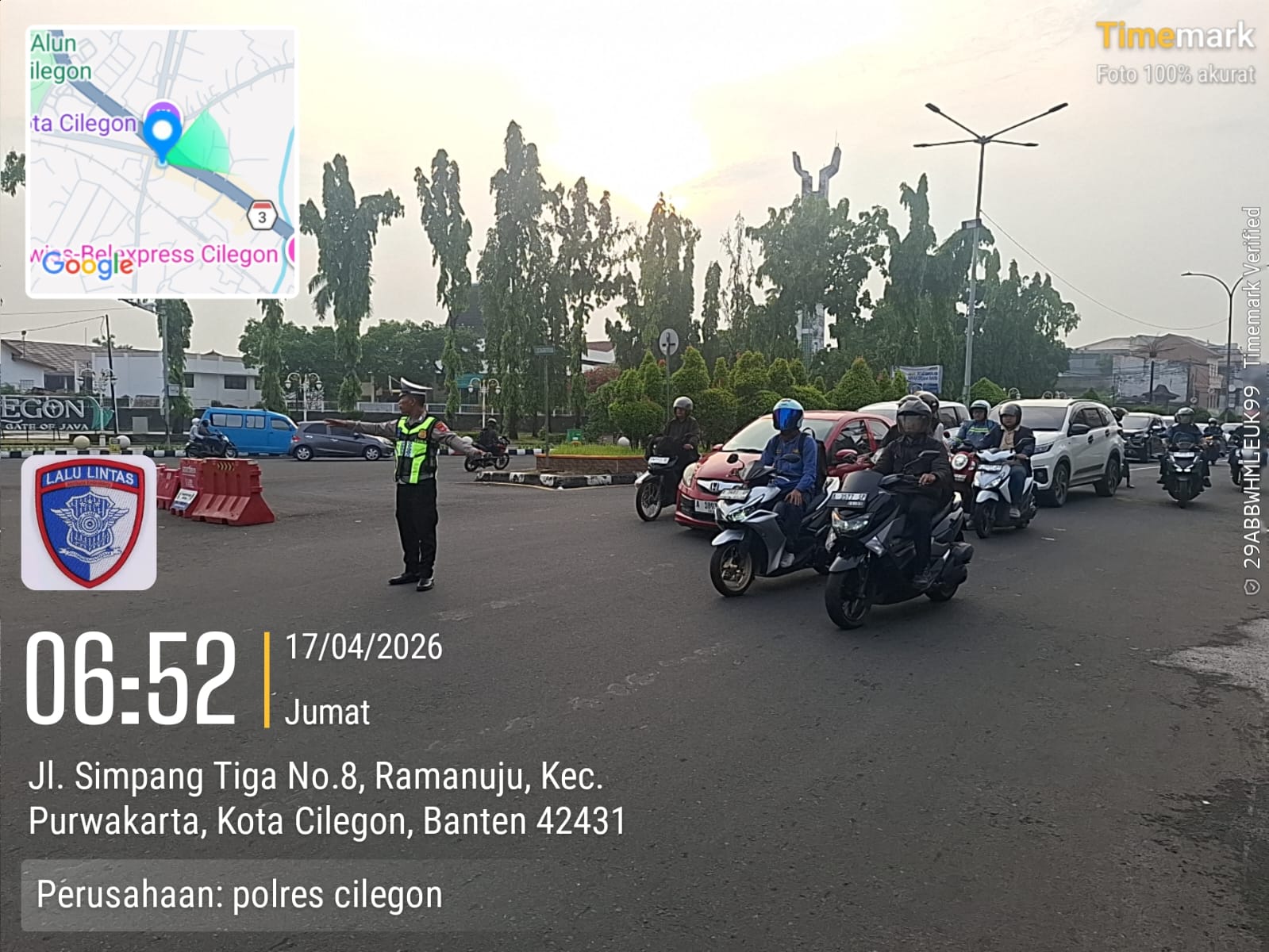 Cilegon, Satlantas Polres Cilegon Polda Banten – Berikan pelayanan kepada masyarakat Kasat lantas Polres Cilegon AKP Ridwan memerintahkan jajaran lalulintas untuk melaksanakan pengaturan lalu lintas di penggal – penggal jalan yang rawan kemacetan di Kota Cilegon, (Sabtu,18/4/2026)