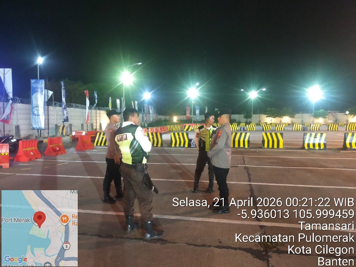 Cilegon - Personil Polsek Kskp Merak Polres Cilegon melaksanakan patroli di kawasan pelabuhan merak memberikan rasa aman dan damai, Selasa (21/04/2026)